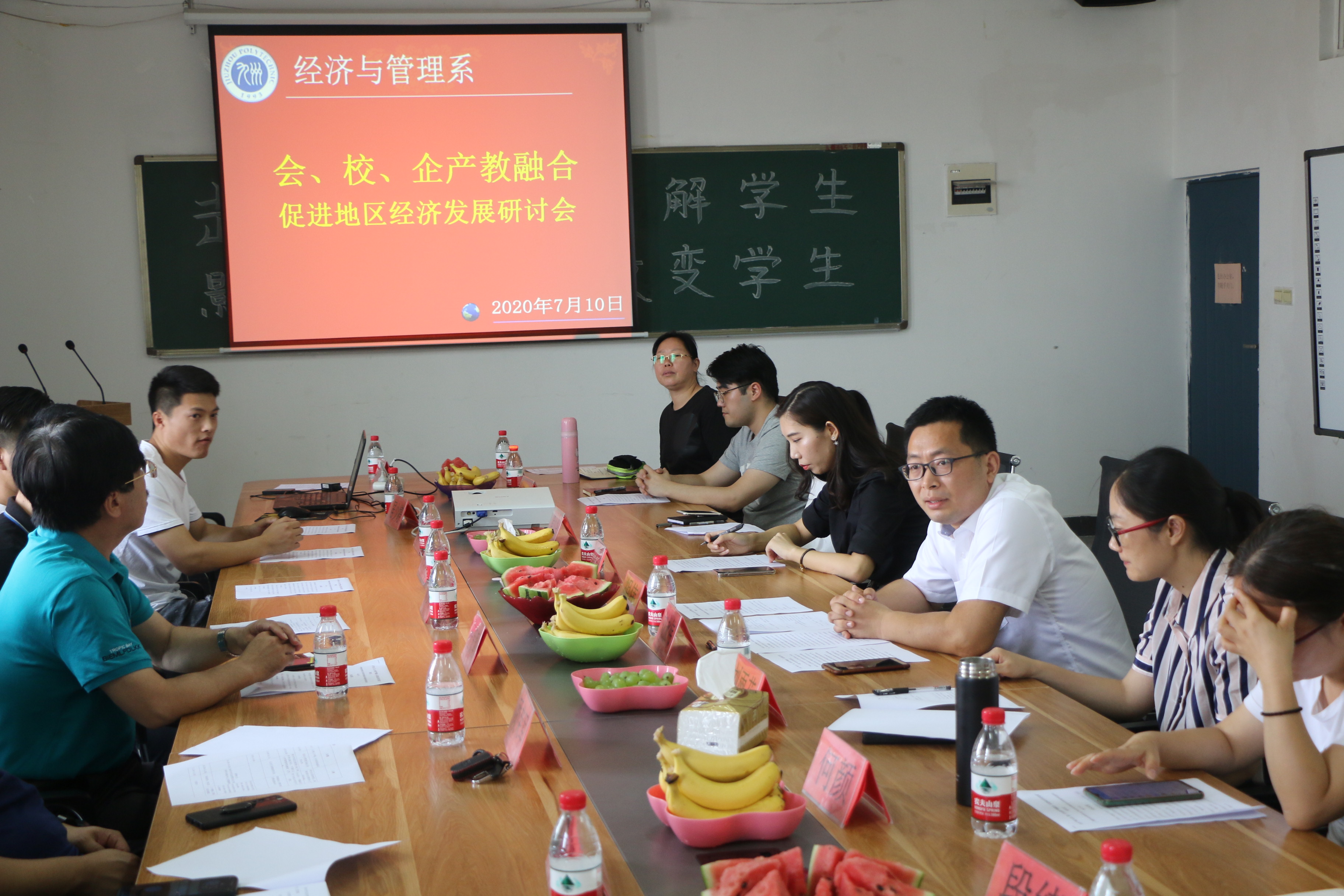 经济与管理系联合徐州市信息管理与电子商务学会、江苏华速信息科技有限公司、徐州行知网络科技有限公司、徐州鼎慧网络科技有限公司、徐州必应网络科技有限公司、徐州德川网络科技有限公司、徐州慕洁网络科技有限公司等学会、企业和学校专家在主704会议室召开了产教融合研讨会。