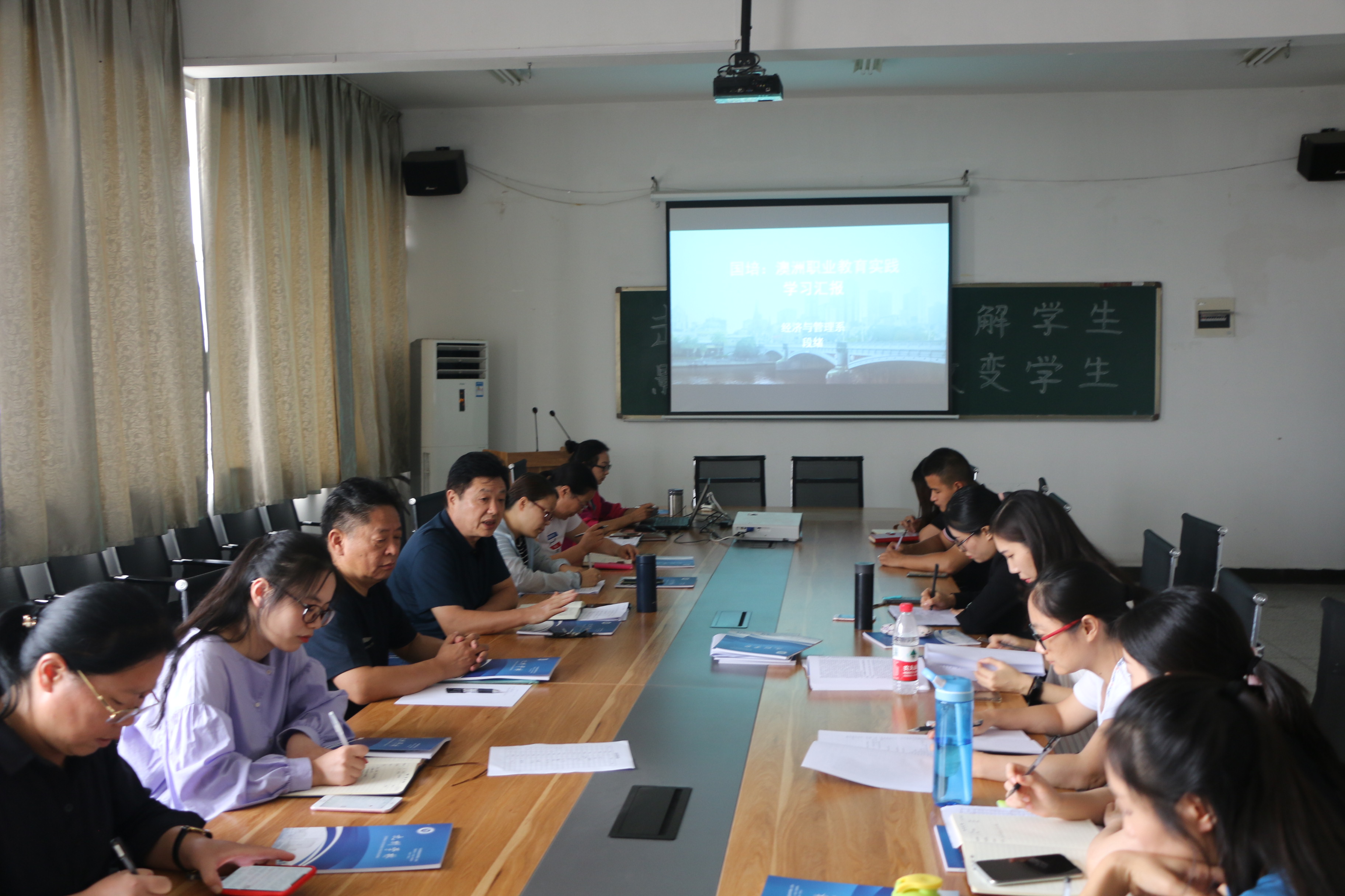 会议首先由经管系实训中心主任段绪老师向大家汇报分享了其参加国培归来的学习成果。张泮州主任特别强调,今后这将成为一项制度,所有外出学习、培训、调研考察等回来的同志都要认真疏理收获与成果并在全体会议上汇报分享。