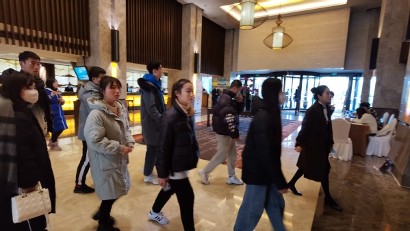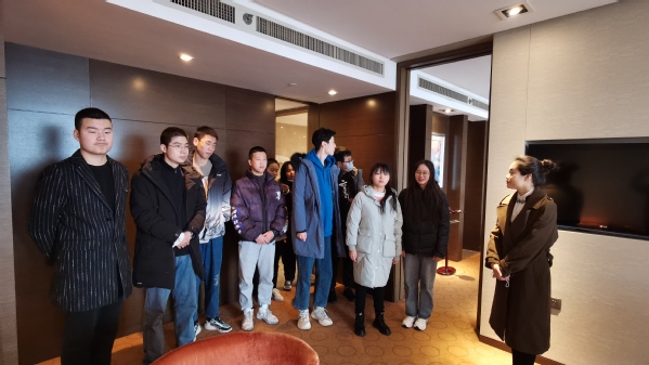 酒店管理的同学们一进入酒店大堂,酒店人力资源部的管理人员对老师和同学们致以热烈的欢迎。然后,同学们跟随着人力资源部的同事一起参观酒店。