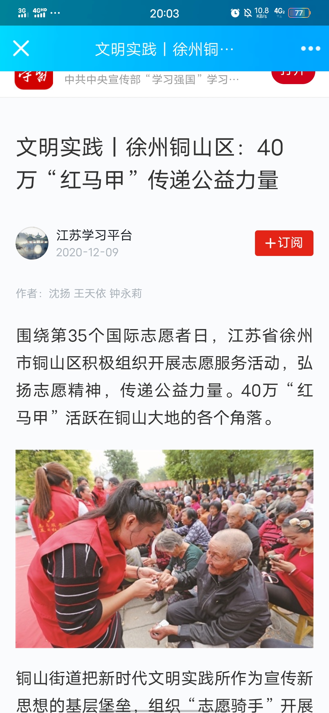我院樵村“红马甲”志愿活动被“学习强国”平台报道