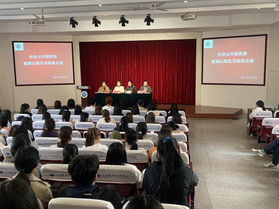 为了培养学生从事幼儿园教育和保育工作的能力,2021年4月23日下午1点,社会公共服务系在主南二教室召开学前教育认知见习动员大会。会议由系教学副主任苏倩倩主持,系主任武艳、副主任黄海出席、2019级、2020级应用英语、幼儿发展与健康管理专业学生及全体教师共同参会。