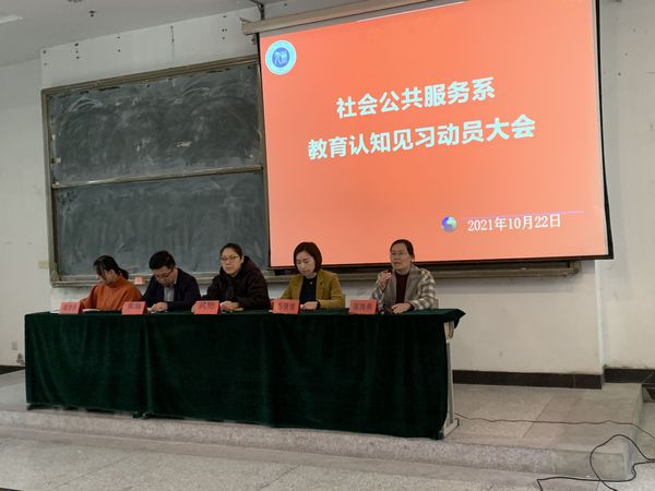 根据学前教育专业人才培养目标的要求,为增进学生对幼儿教师岗位技能的认知能力,适应幼儿教师角色,2021年10月22日中午12点30分,社会公共服务系在主南一教室召开学前教育认知见习动员大会。会议由社会公共服务系教学主任苏倩倩主持,系主任武艳、行政主任黄海出席,2020级、2021级(春)应用英语、婴幼儿托育与服务管理专业全体学生及教研室教师共同参会。