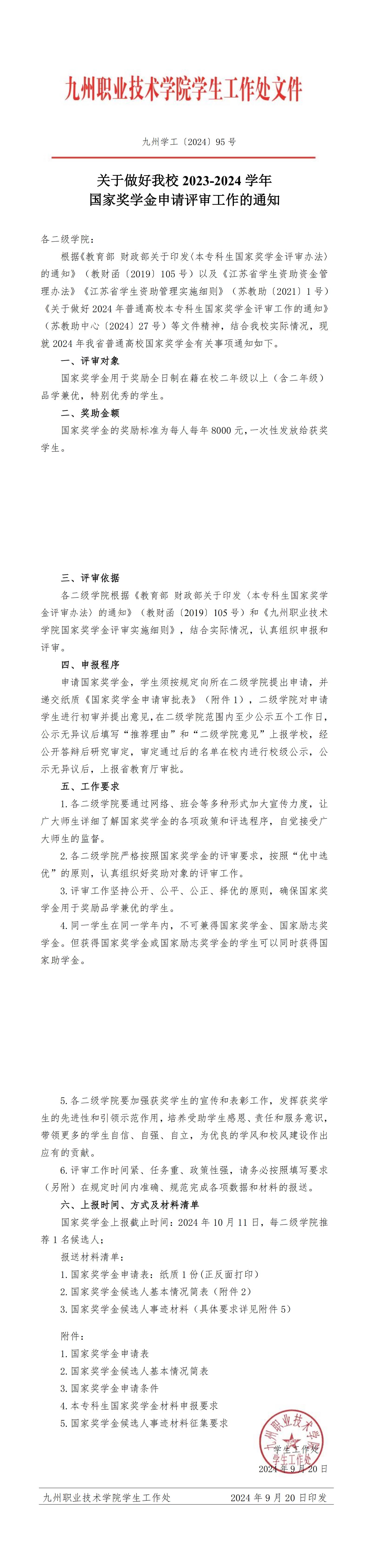 关于做好我校2023-2024学年国家奖学金申请评审工作的通知