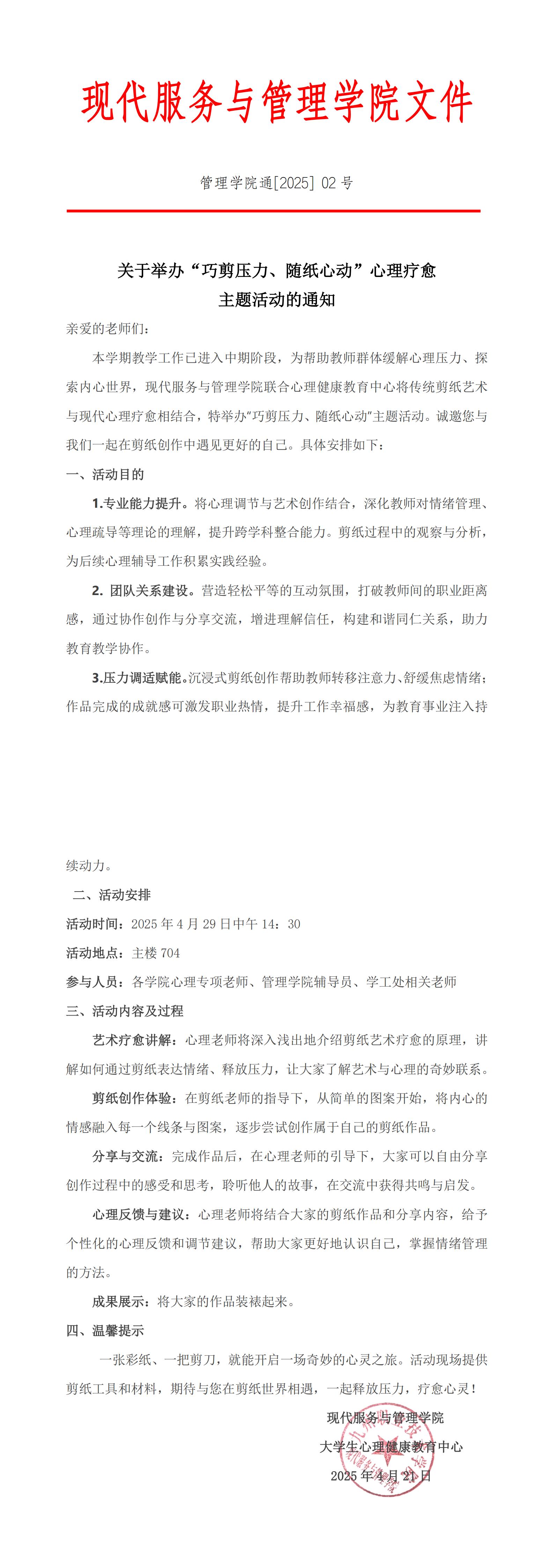 关于举办“巧剪压力.随纸心动”心理疗愈主题活动的通知