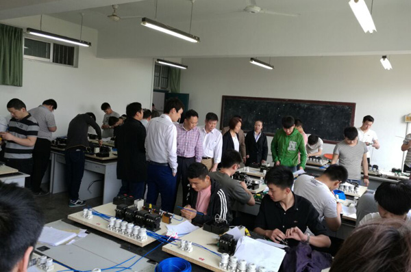 2016年5月10日上午,我院“职业教育周—维修电工技能大赛”拉开帷幕。学院董事长张建委、常务副院长陈万平、教学副院长冯新平、教务处长杜蜀宾等领导亲临现场观摩大赛,并询问了赛程安排及赛项内容。