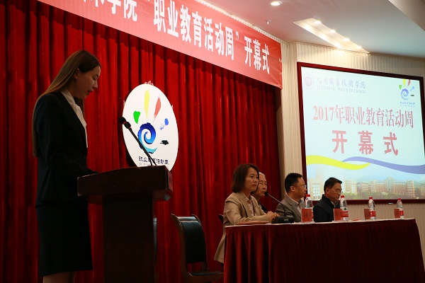 教务处钱荣副处长在开幕式上代表承办部门宣布了“职业教育活动周”内容的具体安排时间表。他说,本次“职业教育活动周”除了组织开展常规的学生技能和青年教师的实践技能竞赛外,还将参与徐州市职业教育成果展示、院内职业教育成果选展、组织师生观看“工匠精神”视频教育篇,以及为师生提供10个项目的技术咨询服务。