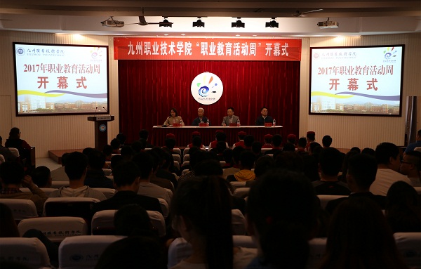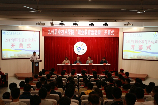 张董事长在致辞中说,自2015年起,国务院决定在每年5月的第二周为“职业教育活动周”。“职业教育活动周”的设立,是国家弘扬劳动光荣、技能宝贵、创造伟大的时代风尚,促进大众创业、万众创新,加快发展现代职业教育的又一重大举措。为办好2017年职业教育活动周,营造迎接党的十九大胜利召开的良好氛围,教育部等六部门专门下发了“关于做好2017年职业教育活动周相关工作的通知”( 教职成函〔2017〕4号),主题是:“共筑职教梦 喜迎十九大”。徐州市根据通知要求,今年举办了首届“职教对接周”活动,为职业院校搭建了活动平台。我院为适应职业教育发展要求,参与了徐州市“职教对接周”活动中的品牌特色专业、出彩职教人、创新创业之星、校企合作示范企业四个项目的评选,以及在本周二至周四在市人力资源服务中心开展的院校展示、校企合作企业展示、就业洽谈等活动,以扩大我院职业教育对外的影响力。今年学院在校内举办的“职业教育活动周”其主题为“知识改变命运 技能成就未来”,以组织开展职业技能竞赛、师生服务活动、观看“工匠精神”视频教育篇和成果展示为主要活动内容。为确保活动的顺利开展并取得实效,张董事长强调,一要抓好组织落实,全院要密切配合,开展好各项活动,在校园内形成氛围,努力产生一定的社会影响力。二要做好宣传展示工作,大力宣传九州职业教育发展成果。三要以活动周为契机,完善长效机制。