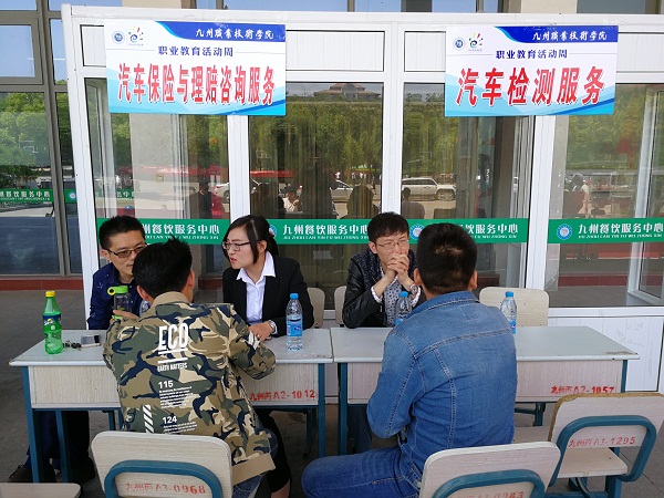 今年学院举办的“职业教育活动周”与去年相比有一个最大的亮点,开展了为全院师生提供了10项技术咨询服务,分别为:计算机维护、家装事项咨询服务、业主收房验收注意事项咨询服务、个人理财服务、网店运行咨询服务、汽车保险与理赔咨询服务、汽车检测服务、推拿按摩服务、关节活动度训练服务、心肺康复训练服务。这是一场不是比赛的比赛,它不以成绩论高低,却以师生提供的技术水平与服务态度赢口碑。瞧!学生在专业教师的带领和指导下,那种精湛技术和热情的服务,赢得了前来咨询师生们的赞誉声。