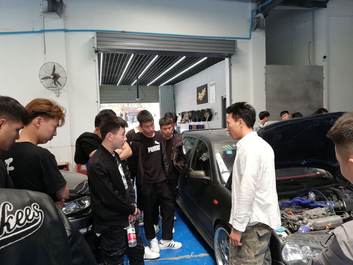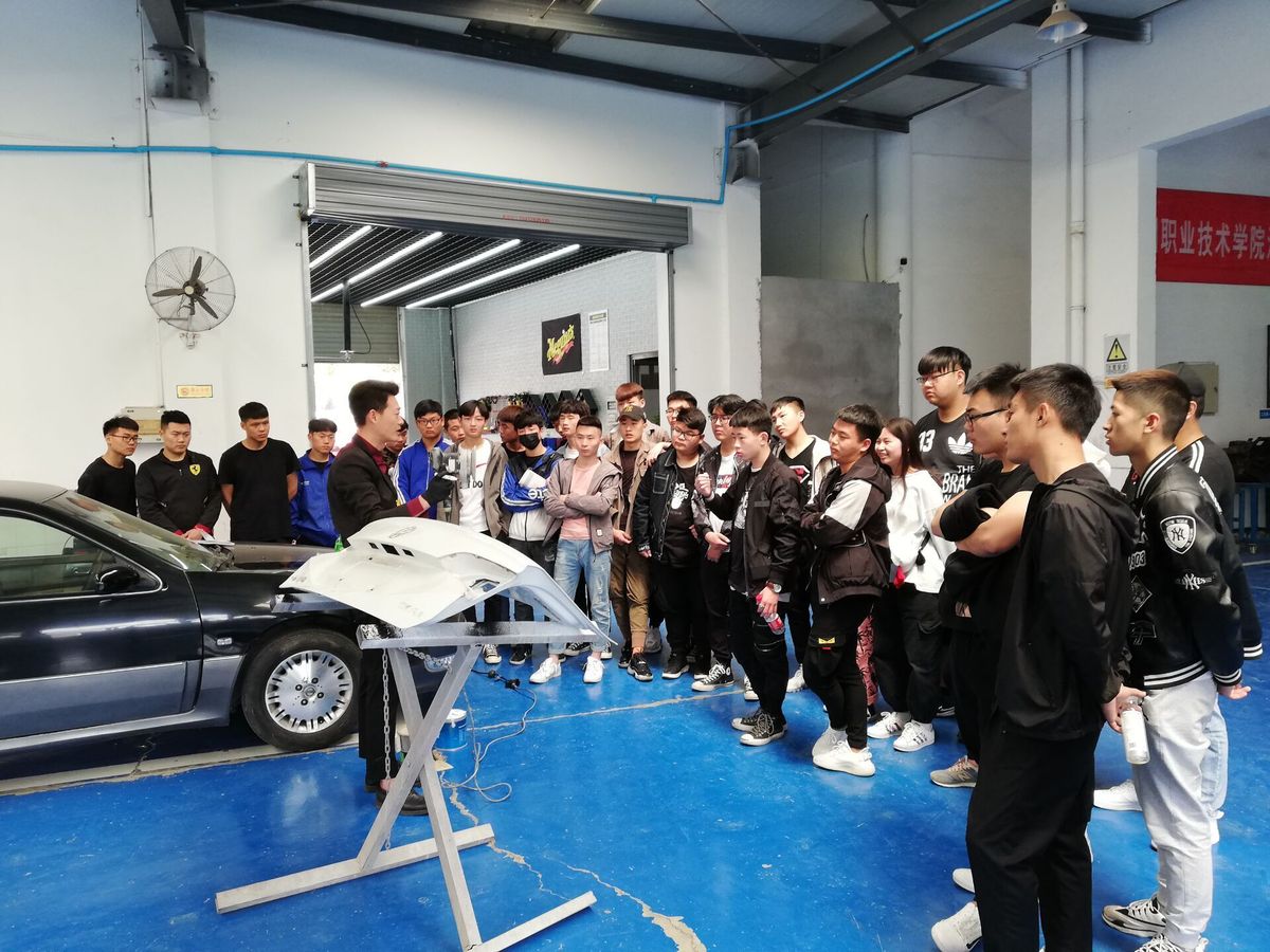 5月7日上午,针对学生《汽车维修知识与技能》课程的学习内容,中锐汽车服务何经理在现场演示了钣金喷漆的流程。当同学们看到何经理娴熟的技术后纷纷表示,“行家功夫一出手,就知有没有,”对何经理熟练的动作手法、精湛的刮腻子、喷涂技术赞不绝口。接着,维修工莒师傅开来一辆第四代高尔夫改装轿车型,莒师傅结合自己多年与汽车打交道积累的经验,向同学们详细介绍了经过改装车辆的漆膜、轮毂、发动机、音响、排气管等装置,并对同学提出的各种困惑和疑问一一解答,还有和同学们一起探讨了汽车的性价比,让爱好汽车改装的男生们产生了浓厚的学习兴趣。
