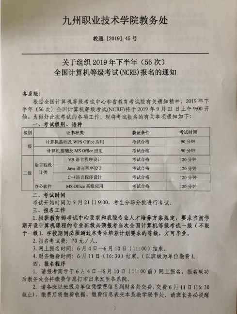 关于组织2019年下半年(56次)全国计算机等级考试(NCRE)报名的通知