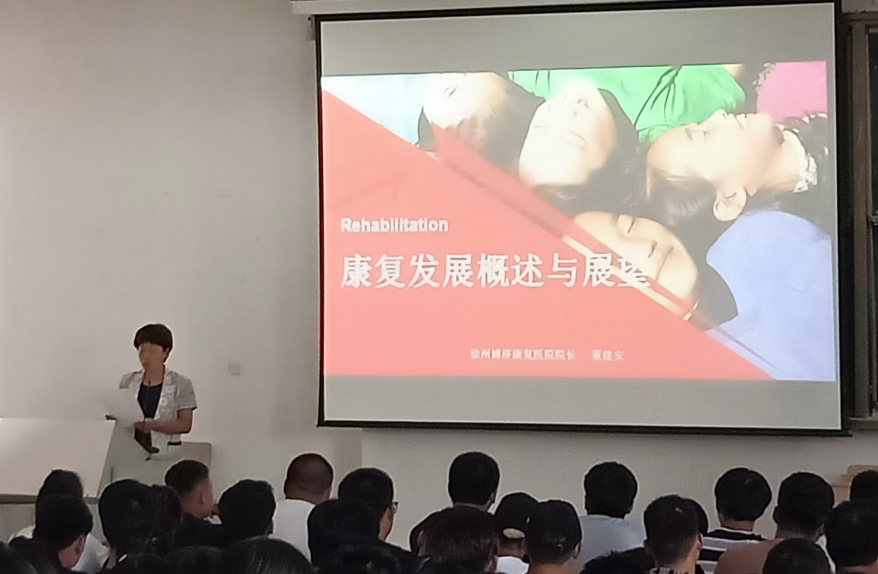 9月26日下午,徐州博济康复医院院长董建安莅临我院,在我院主北2教室,董建安院长作题为“康复发展概述与展望”的专题讲座。医疗与健康学院周院长担任此次讲座主持,各级领导、医疗与健康学院全体教师和19级新生有幸聆听了此次讲座。