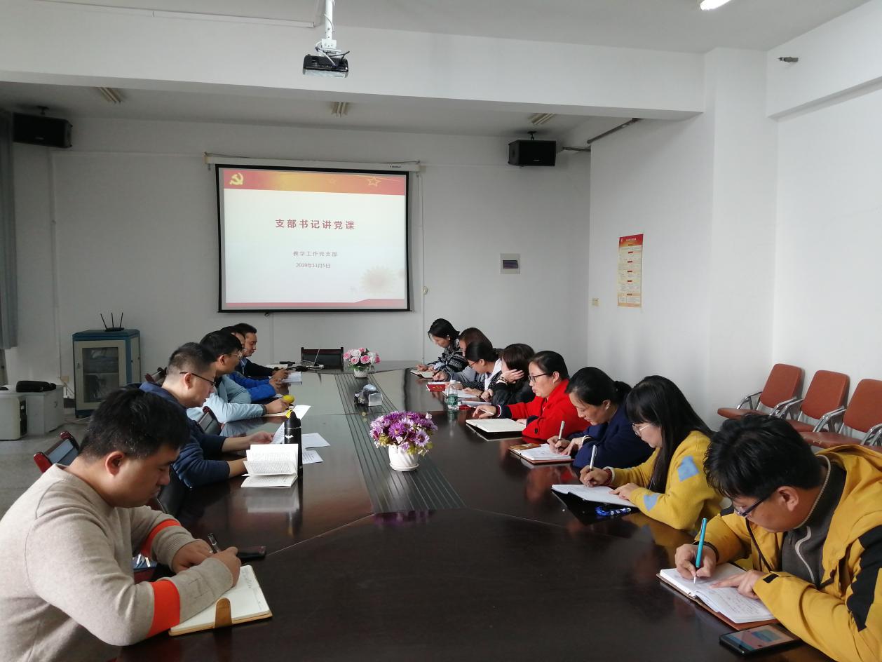 为深入学习“不忘初心,牢记使命”主题教育进一步学习宣传贯彻落实党的十九大精神,11月5日下午,学院教学工作党支部在主楼812会议室开展“支部书记上党课”活动。本次活动由支部书记张臻做主讲人,教务工作党支部成员参加此次党课。