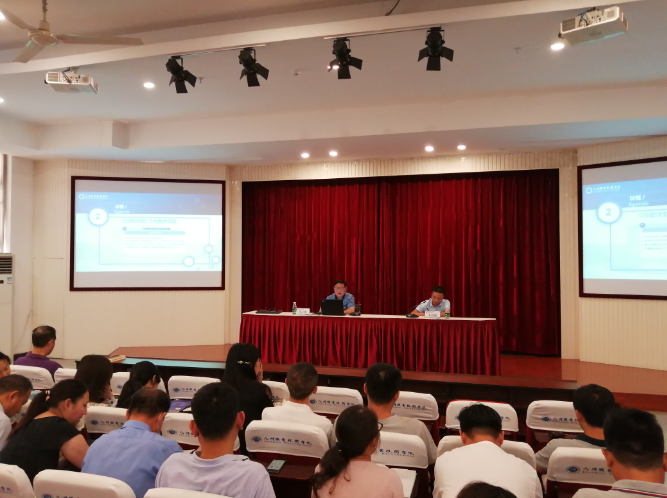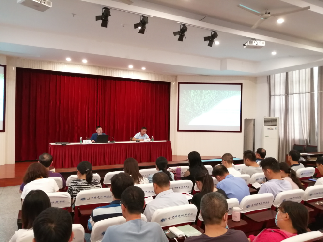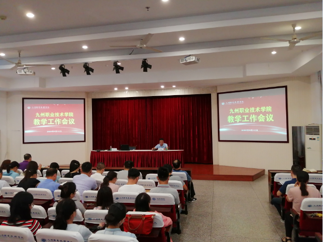 2020年9月11日下午2:30,学院在主南二会议室召开本学期教学工作会议,学院副院长杜蜀宾、谢明荣出习会议。杜蜀宾副院长将就“职教20条”、“双高计划”和《江苏省职业教育质量提升行动计划(2020-2022年)》进行解读并就有关工作作指示,教务处张臻处长对上学期有关工作做简要总结并就本学期教育教学重点工作做安排。各系(院)、公共基础课部、教务处、科研处、图文中心全体教职工参加会议。