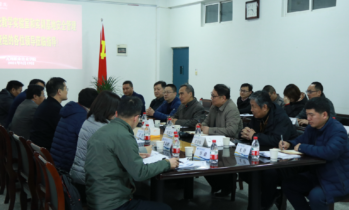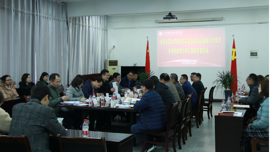 3月19日下午,全省职业院校教学实验室和实训基地安全管理专项检查徐州淮安检查组张芳儒组长一行7人来我院开展检查工作。院长朱开永、副院长杜蜀宾及教务处和各二级院系主要负责人、各实训中心主任参加了检查活动。