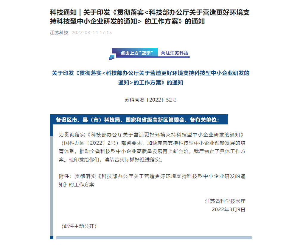 关于印发《贯彻落实科技部办公厅关于营造更好环境支持科技型中小企业研发的通知的工作方案》的通知