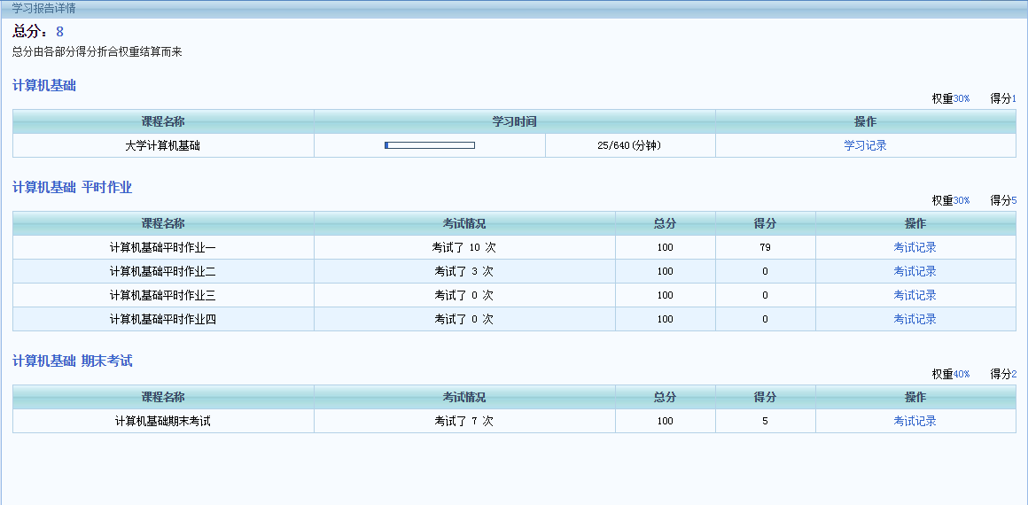 查看学习详情界面如下: