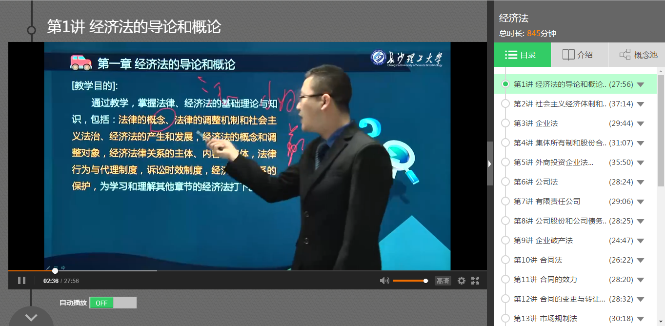 点“课件学习”,以下是学生学习视频课件的界面: