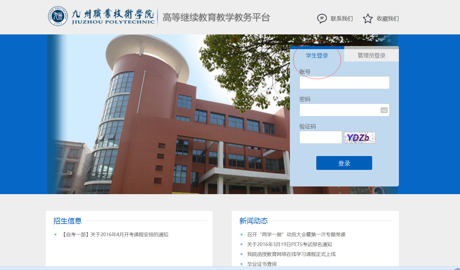 选择登录类型为“学生登录”: