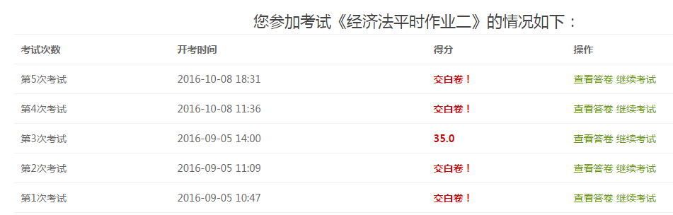 做完之后点“提交”,提交之后可以查看答卷和分数,也可以继续考试,修改答卷,如下图: