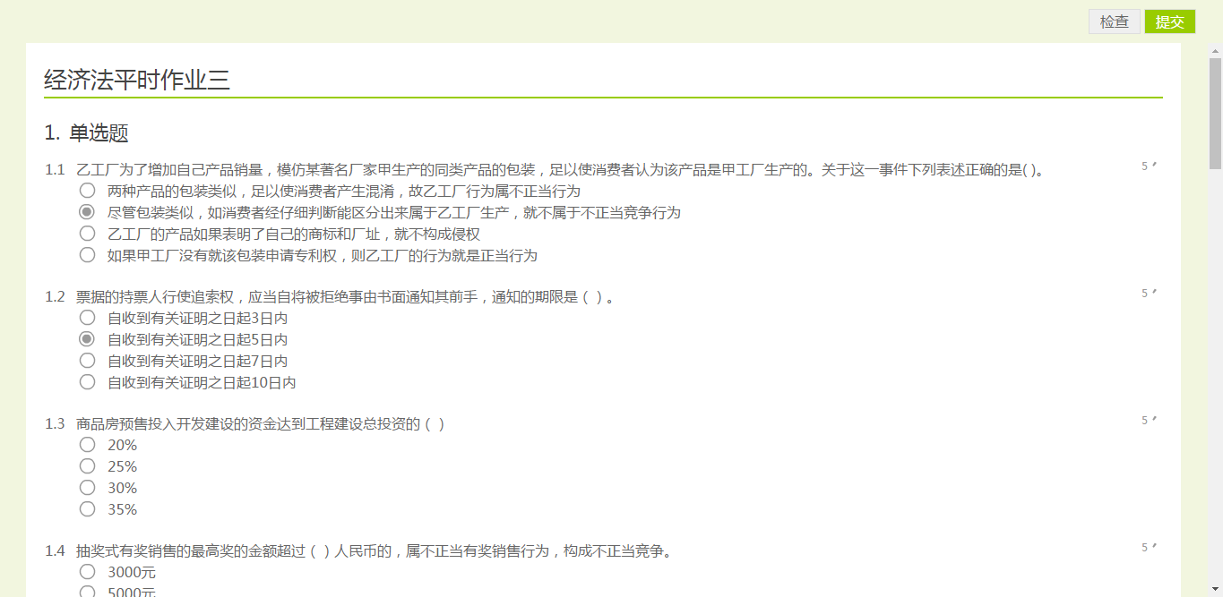 点“平时作业”,以下是学生在线做平时作业的界面: