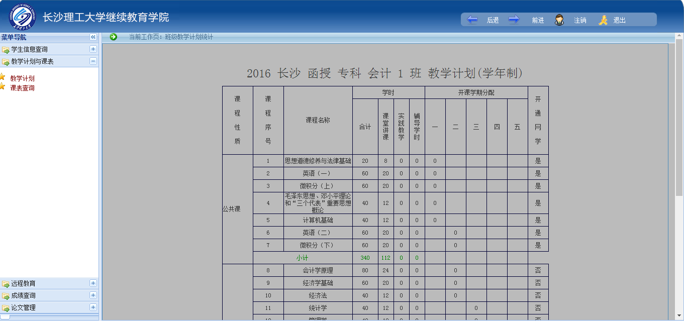 三、查询教学计划与课表