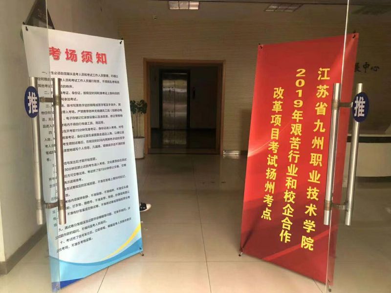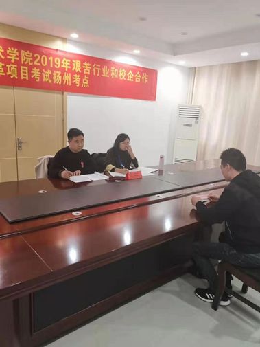 江苏省2019年艰苦行业和校企合作改革项目考试在我院精心严密组织下,于10月26日分别在校本部及扬州市人力资源信息服务业协会设置两个考点共计11个考场,近300人参加笔试及面试两个环节的考试。