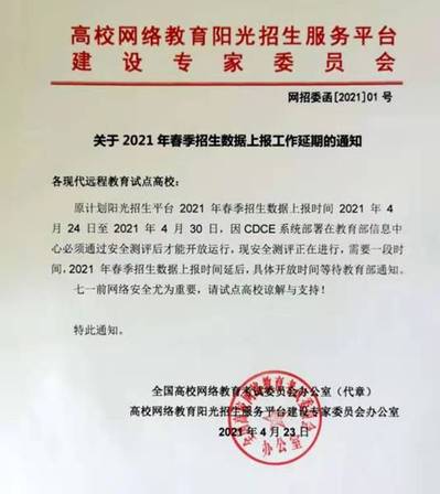 2021春季入学的学生学籍电子注册延后,新生学籍信息暂不能查询,具体时间待教育部通知,请做好相关学生的解释工作。