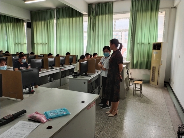 为确保考试工作有序顺利地进行,我院成立了考试领导小组、疫情防控工作小组及后勤保障小组,负责考试的各项工作。并于8月1日-8月4日赴苏州市姑苏区参加国家医学考试中心的线上培训和理论考核。协同图文中心负责保障设备、网络、考试软件的正常运行。继续教育学院院长吴静就考试过程中的操作规范、考试时间节点,考务和监考人员的职责纪律做了重点培训。为了确保考试公平、公正、考试制度的规范,对监考老师进行不重复监考原则分配考场。考生凭健康码、行程码、48小时核酸阴性报告进入学校,要求考生佩戴口罩、保持安全距离。进入学校后,通过考场指示牌、考场分布图,引导考生进入考场。为了倡导诚信考试,考务工作人员对每一位考生用金属探测仪进行检查,防止考生将违禁物品带入考场。
