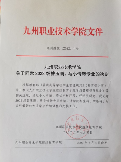 太阳成集团tyc234cc关于同意2022级昝玉鹏、马小情转专业的决定