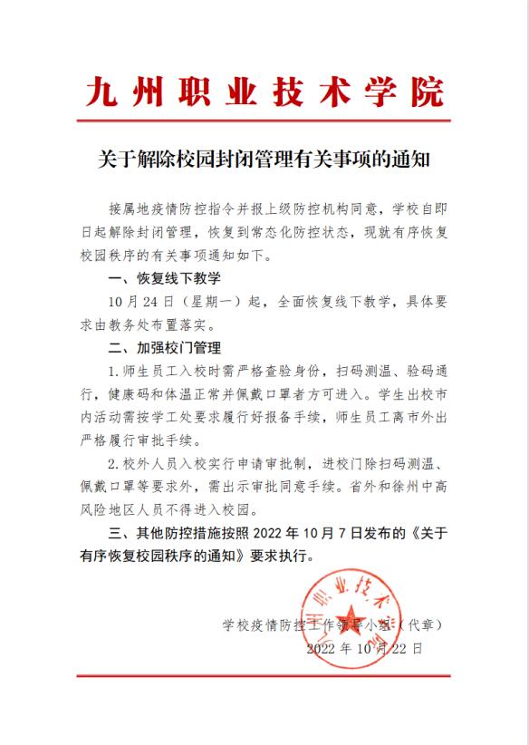 关于解除校园封闭管理有关事项的通知