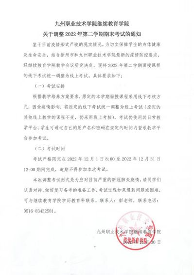 太阳成集团tyc234cc继续教育学院关于调整2022年第二学期期末考试的通知