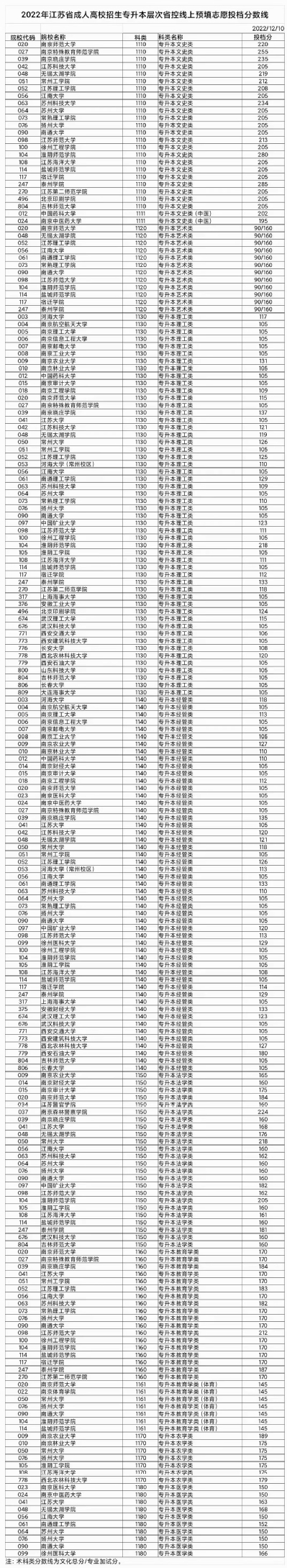 2022年江苏省成人高校招生专升本层次省控线上预填志愿投档分数线