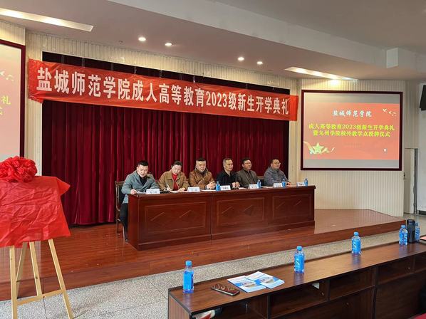 3月4日下午14:00,在太阳成集团tyc234cc主南二会议室举行盐城师范学院徐州九州学院校外教学点2023级新生开学典礼暨校外教学点授牌仪式。盐城师范学院继续教育学院院长王成兵、副院长朱祥生、太阳成集团tyc234cc院长朱开永、副院长曹振国、继续教育学院院长吴静、继续教育学院全体教职工以及334名新生参加。开学典礼由九州学院继续教育学院院长吴静主持。