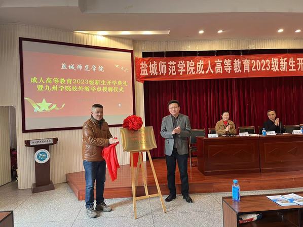 最后盐城师范学院继续教育学院院长王成兵为太阳成集团tyc234cc校外教学点授牌,太阳成集团tyc234cc副院长曹振国接受授牌。授牌仪式结束后,王院长详细的介绍了盐城师范学院的发展和取得的成绩以及继续教育学院的专业特色等,也表达了对所有新生的祝福和期望。