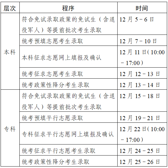我省2023年成人高校招生录取工作将于12月5日至26日进行,具体日程如下: