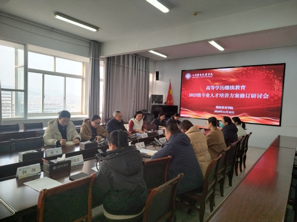 为强化办学管理规范性,提升人才培养的质量与效率,全面审视并优化学籍管理、教学流程等方面的成效与短板,同时深入探讨新时代背景下高等学历继续教育的发展蓝图,探索促进其规范化、有序化、高质量发展的新策略与途径,形成协同高效、目标一致的办学体系,继续教育学院于2024年12月25日在主楼913会议室成功举办了2025级高等学历继续教育专业人才培养方案优化研讨会。校长朱开永、继续教育学院院长吴静、副院长郑瑾以及各二级学院领导与专业负责人悉数出席,会议由郑瑾副院长主持。