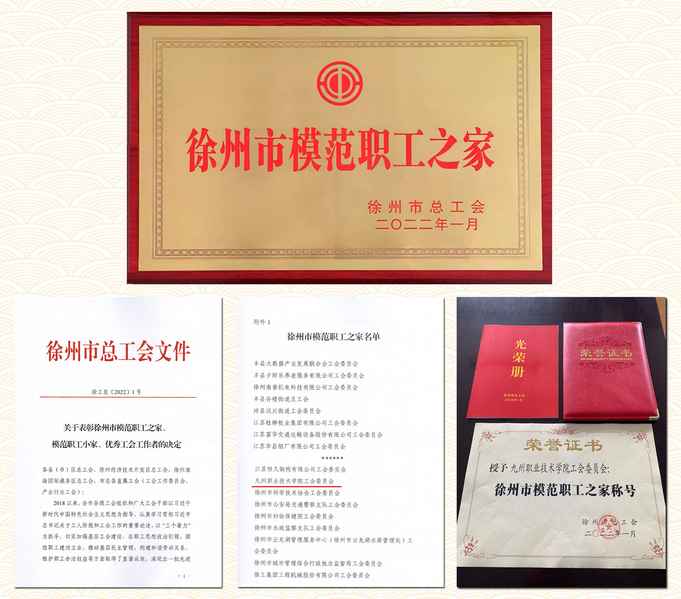 近日,徐州市总工会印发《关于表彰徐州市模范职工之家、模范职工小家、优秀工会工作者的决定》(徐工发〔2022〕1 号),我院工会获得“徐州市模范职工之家”称号。