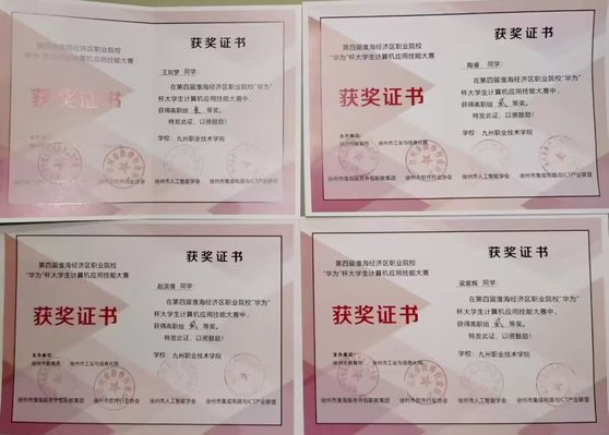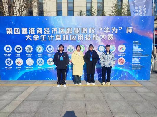 12月24日,第四届淮海经济区职业院校“华为杯”大学生计算机应用技能大赛在江苏建筑职业技术学院举行。我校机电与汽车工程学院学生代表队,经过激烈角逐,由王如梦和陶睿取得了网络赛道(高职组)分别获得一等奖、二等奖,梁家辉和赵滨倩取得了软件赛道(高职组)获得二等奖。