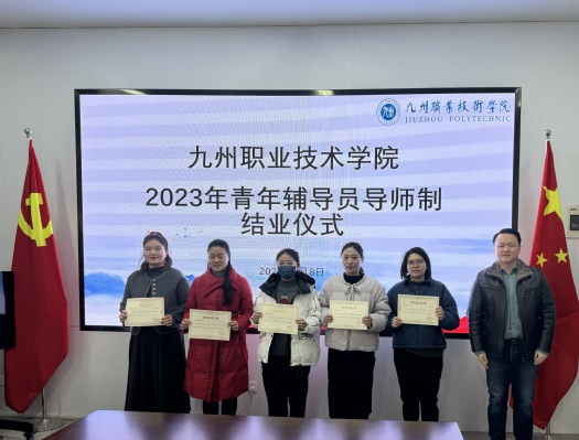 在2023年青年辅导员导师制结业仪式上,学生工作处综合服务中心主任李兆亚宣读了《关于2023年辅导员导师制考核结果的通知》,党委副书记张超为程嘉等5位青年辅导员导师颁发了结业证书。