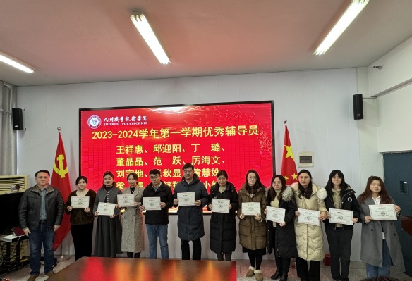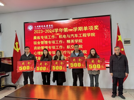 随后,学工处综合服务中心主任李兆亚宣读《关于表彰2023-2024学年第一学期学生工作先进集体、优秀个人的决定》,对在过去一年学生工作中表现突出的2个学生工作先进集体、5个学生工作单项奖和12位优秀辅导员进行表彰。与会领导分别为先进集体和个人颁发荣誉证书,并合影留念。