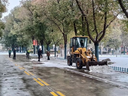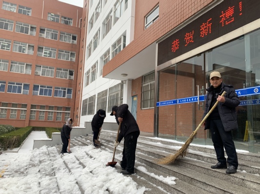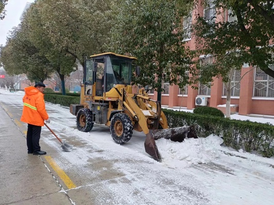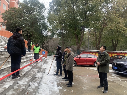 扫雪除冰保安全,不畏严寒暖人心。新学期伊始,大雪普降,美丽洁白的雪花给校园带来惊喜的同时,也将校园道路覆盖了一层厚厚的冰雪。2月23日至24日,学校紧急动员,组织大量工作人员和学生志愿者开展扫雪除冰工作,为校园道路的交通畅通和师生的出行安全保驾护航。校长朱开永等一行前往现场亲切慰问。