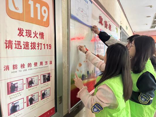 志愿者在主楼大厅进行电梯秩序维护