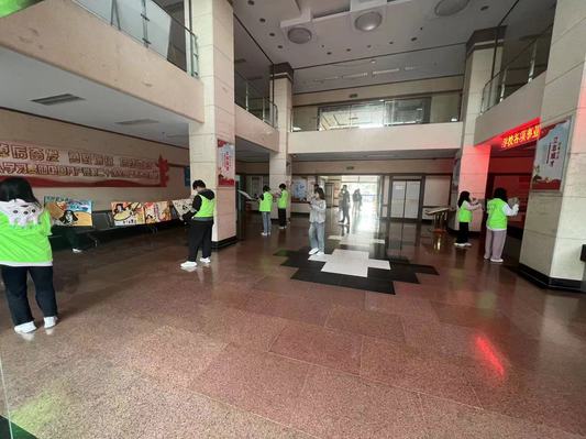 志愿者在教学主楼进行“除胶行动”