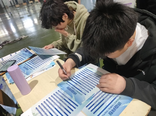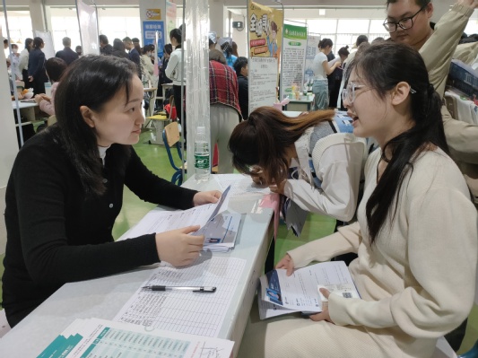 招聘会现场,毕业生们手持精心准备的简历,主动与招聘单位洽谈交流,咨询关心工作内容、薪资待遇、招聘程序等方面内容,积极推荐自己,认真投递每一份简历;各单位招聘负责人热情接待,耐心介绍单位情况,细致讲解招聘条件,认真对待每一位应聘者;招聘会的工作人员与招聘单位深入交流,详细了解岗位需求,为应聘学生提供细致地现场指导;学生志愿者们活跃在现场,为每一位来访者提供工作指引和志愿服务。现场氛围热烈。