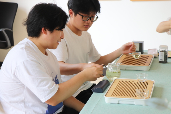 此次活动是我校“五育润心 沐光同行”主题系列活动之一。在活动中,朱永芳和冯贺雷两位指导老师采取互动式、体验式、浸润式等多种形式进行讲授演示,引导同学们用心去看、听、闻、摸来体验茶艺所带来的视觉、触觉、听觉、嗅觉的茶香余韵。同学们认真学习,熟练掌握汤器、请茶、洗茶、泡茶、拂盖、封壶、分杯、回壶、分茶、闻香、品茗等操作,静心感受茶文化的魅力。