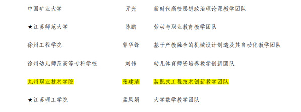 近日,江苏省教育厅发布《关于2024年江苏高校“青蓝工程”培养对象的通知》(苏教师函〔2024〕14号),我校以土木工程系张建清老师为带头人的“装配式工程技术创新教学团队”入选“青蓝工程”优秀教学团队培养对象,社会公共服务系苏倩倩老师入选“青蓝工程”优秀青年骨干教师培养对象。在此次评选中,我校优秀教学团队首次入选“青蓝工程”优秀教学团队培养对象项目,也是江苏省唯一一所入选的民办高职院校。