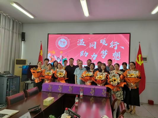 鹰击天风壮,鹏飞海浪春,一年一度的中考、高考即将来临。5月31日中午,我校举行“温暖同行 助力梦想”教职工子女中高考慰问座谈会,向家中有子女即将参加2024年中高考的18名教职工进行慰问,并送上“一举夺魁”手捧花、“事事高中”等礼盒。校长朱开永,党委副书记张超,工会副主席武艳,工会委员以及受慰问的18位教职工参加活动。