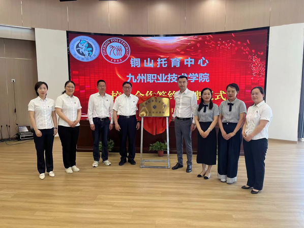 最后,在与会人员的共同见证下,学校与铜山托育中心签署了校企合作协议,并共同为校外实训基地揭牌。