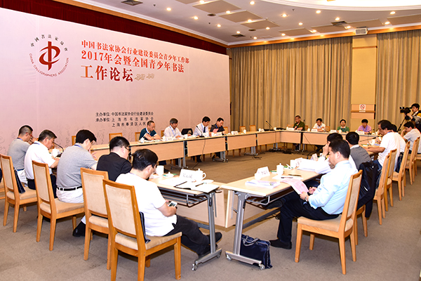 2017年5月27日,由中国书法家协会行业建设委员会主办,上海市书法家协会、奉贤区人民政府承办的中国书法家协会行业建设委员会青少年工作部2017年会暨全国青少年书法工作论坛在上海市奉贤区召开。全国政协常委、中国书协主席苏士澍,中国书协副主席、行业建设委员会主任刘金凯,中国教育学会项目办主任徐硕,上海市教育委员会副主任贾炜,上海市文联专职副主席沈文忠,上海市文联副主席、书协主席周志高,奉贤区委副书记王霄汉,中共奉贤区委常委、宣传部长徐卫,中国书协行业建设委员会青少年工作部副秘书长周庶民、韩清波等,以及来自全国各地的青少年工作部委员出席了开幕式。会议由中国书法家协会行业建设委员会青少年工作部秘书长潘善助主持。