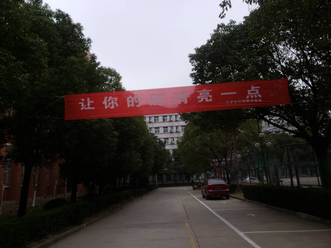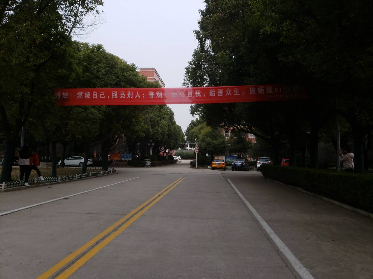 为了推动校园文明建设,营造整洁、有序和和谐的校园环境,2018年12月26日中午12:00,我院大学生社团联合会在全校范围内举办了创建文明校园之悬挂宣传标语的活动。